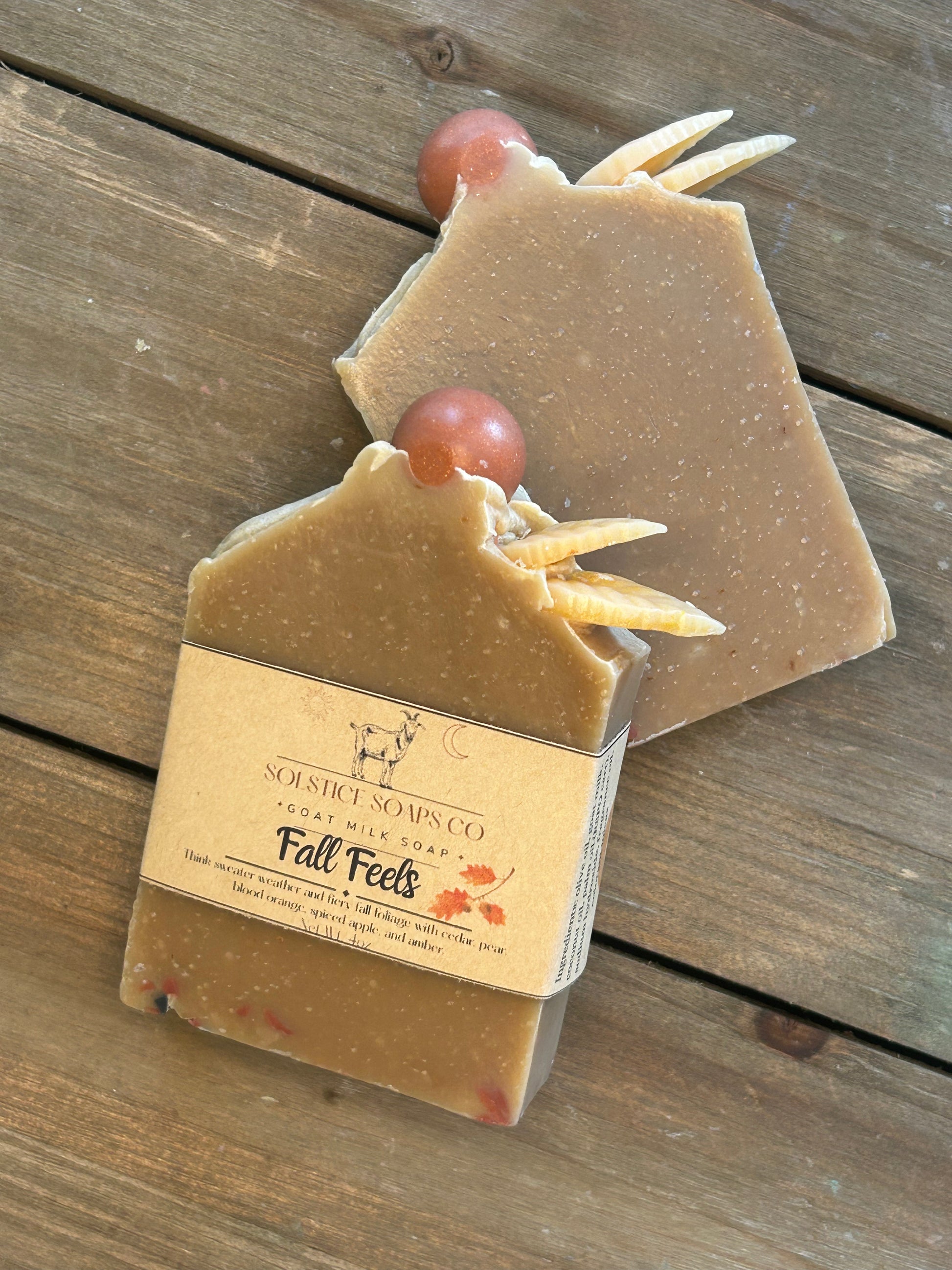 Think sweater weather and fiery fall foliage with this soap. Scented of cedar and fallen leaves with sweet Anjou pears and blood orange. Spiced apples and amber create the nostalgic comforting fall feeling.