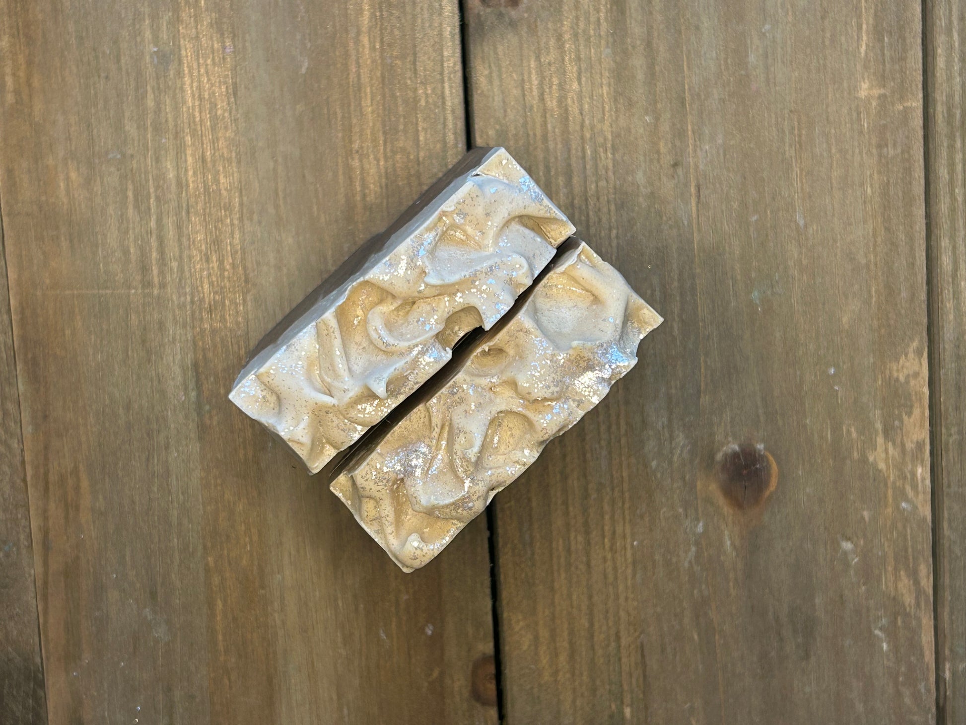 Ingredients: olive oil, goat milk, coconut oil, palm oil (RSPO cert), sodium hydroxide, colorant micas, titanium dioxide, fragrance oil