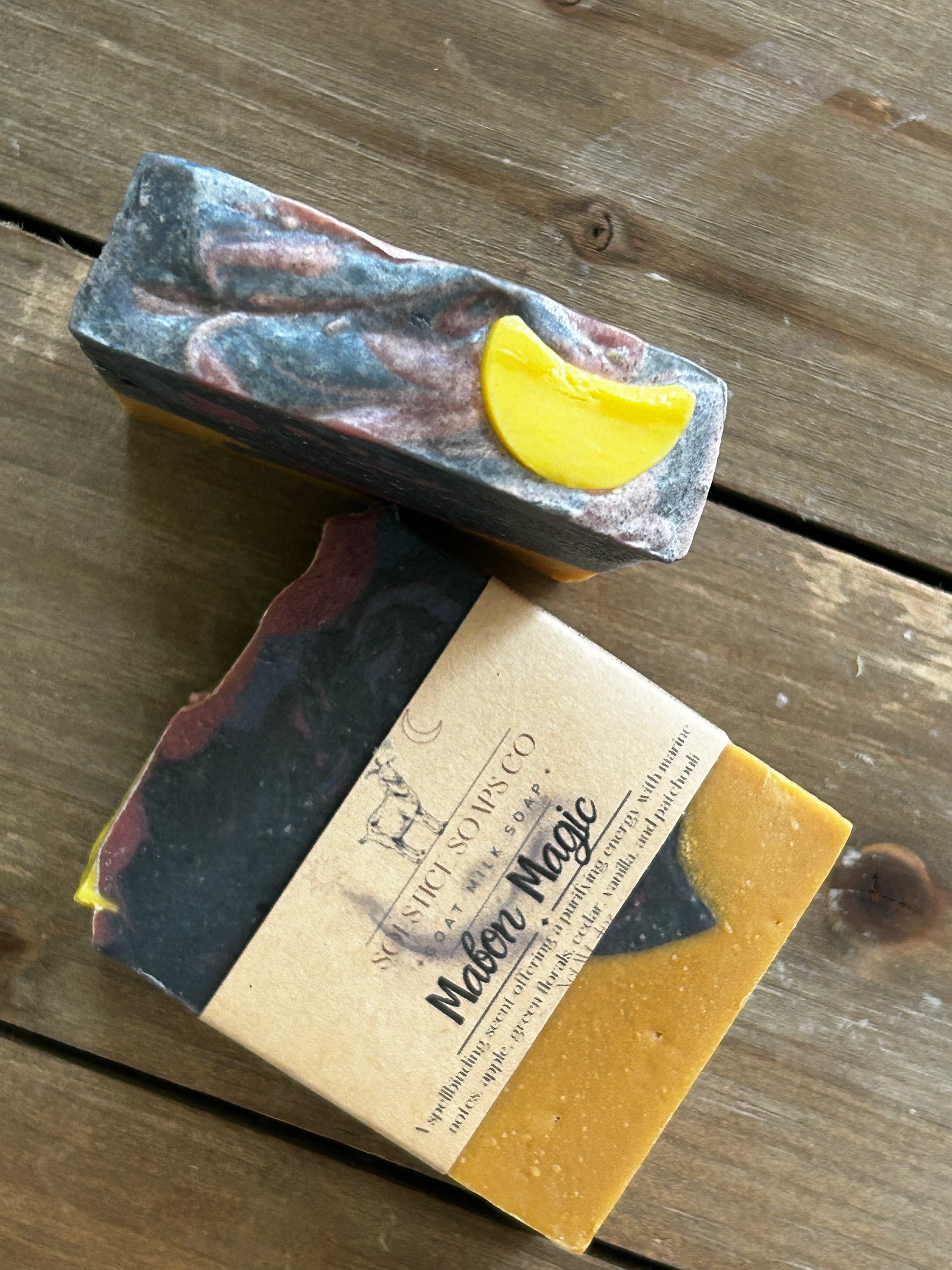 Celebrate the turning of the seasons with Mabon Magic, a soap inspired by balance, gratitude, and autumn’s quiet enchantment. Crisp marine notes swirl with bright apple, while grounding cedar and earthy patchouli root the blend in warmth. A touch of vanilla softens the edges, like golden sunlight slipping through the trees. Fresh, mystical, and deeply restorative. This bar captures the magic of the equinox.